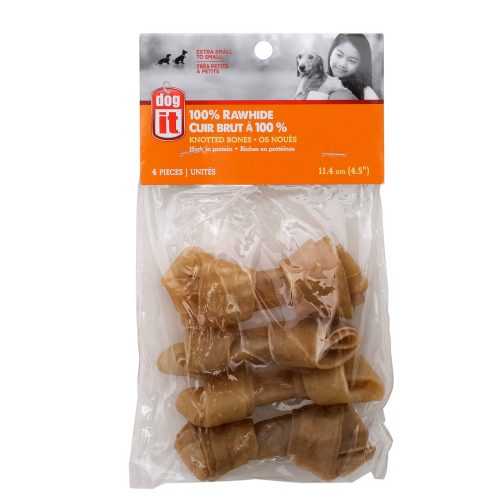 Os noué Dogit en cuir brut, 11,4 cm (4,5 po), paquet de 4