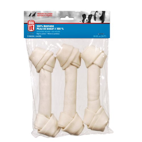 Os noué Dogit en peau de bœuf naturelle, grand, 20-23 cm (8-9 po), 300 g (10,6 oz), paquet de 3