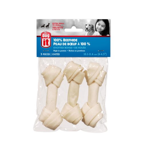 Format boni de 3 os noués Dogit en peau de bœuf naturelle, mini, 10 cm (4 po), 30-35 g (1-1,2 oz)